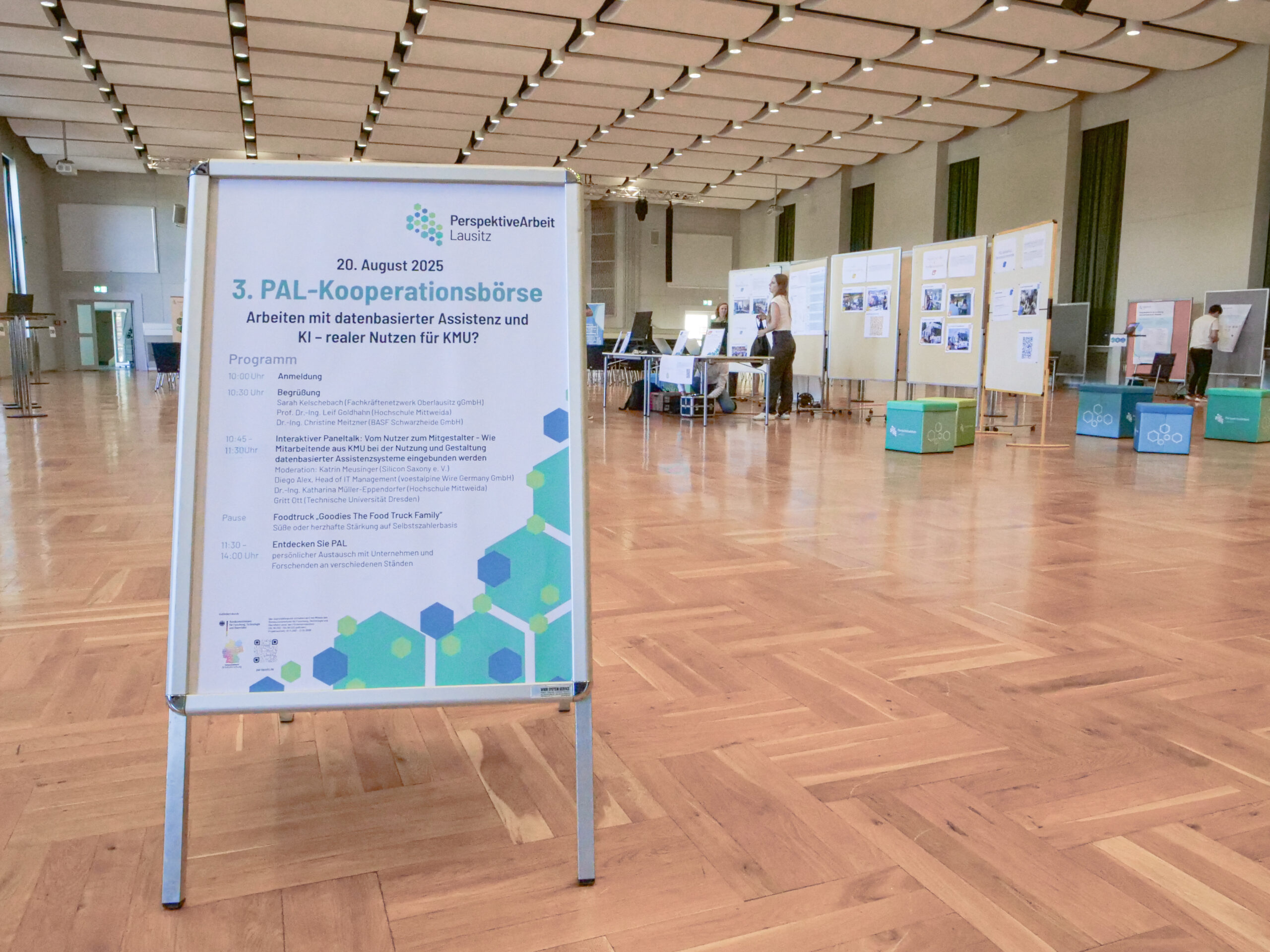 Am 20. August 2025 öffnete das BASF Kulturhaus Schwarzheide seine Türen für die 3. PAL-Kooperationsbörse. Die Veranstaltung stand ganz im Zeichen der Frage, wie Arbeit in der Lausitz zukunftsfähig gestaltet werden kann – mit einem besonderen Fokus auf KI, Assistenzsysteme und partizipative Methoden.