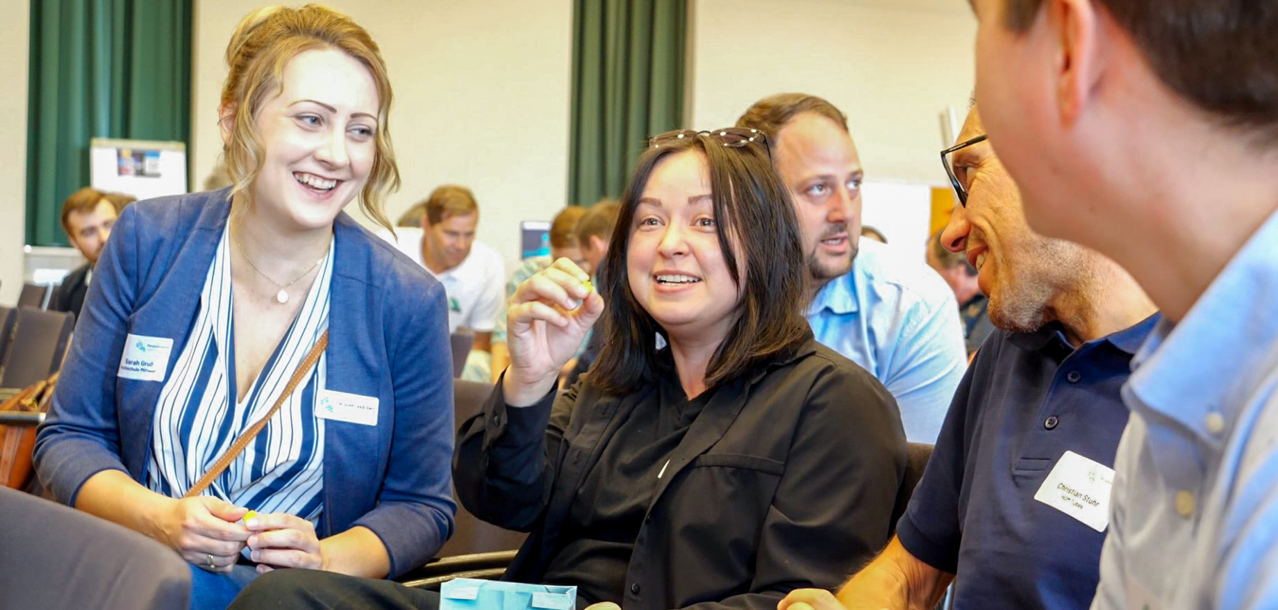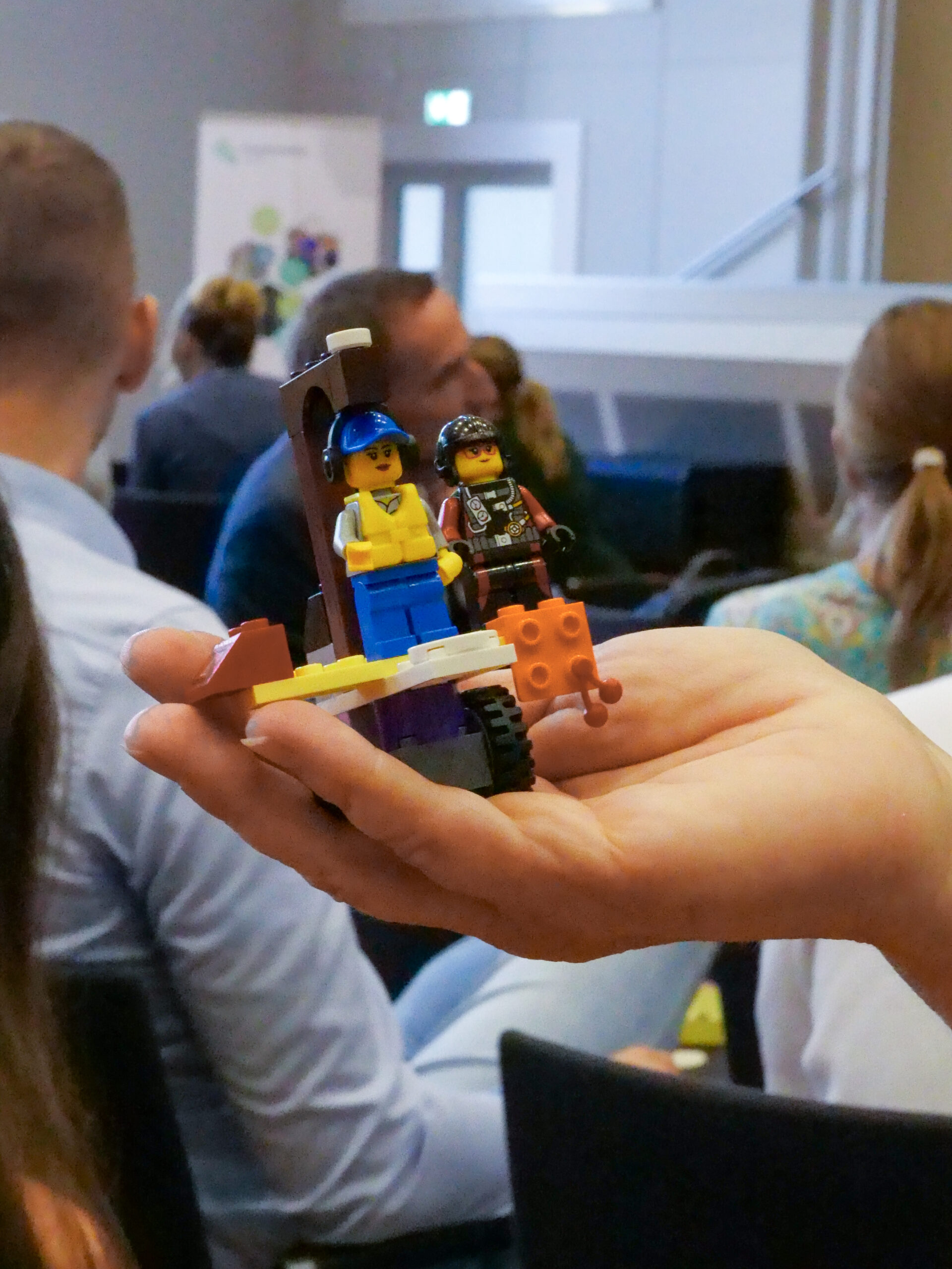 Ein Highlight der Veranstaltung war das interaktive Panel, das den Dialog zwischen PAL-Mitwirkenden und den Gästen aus der Lausitzer Unternehmenslandschaft förderte. Gleich zu Beginn und noch einmal am Ende kamen die Zuhörenden mithilfe von LEGO® Serious Play® direkt miteinander ins Gespräch. Das Panel drehte sich vor allem um die Frage, welche Vorteile ein partizipatives Vorgehen bei der Entwicklung von Assistenzsystemen hat und welche Methoden sich besonders eignen, um emotionale und praktische Hürden zu verringern.