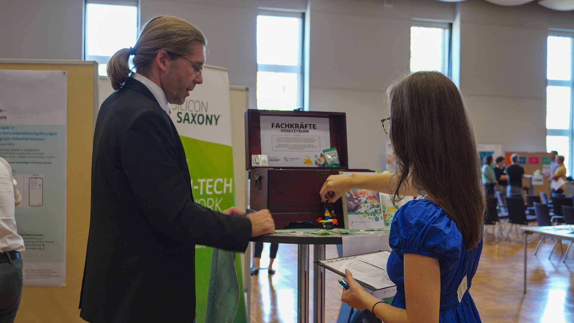 • die Fachkräfte-Schatztruhe (Silicon Saxony e.V.) präsentierte verschiedene Angebote, um MINT-Fachkräfte für die Lausitz zu finden, zuhalten und zu entwickeln. (PAL-Broschüre Fachkräfte)