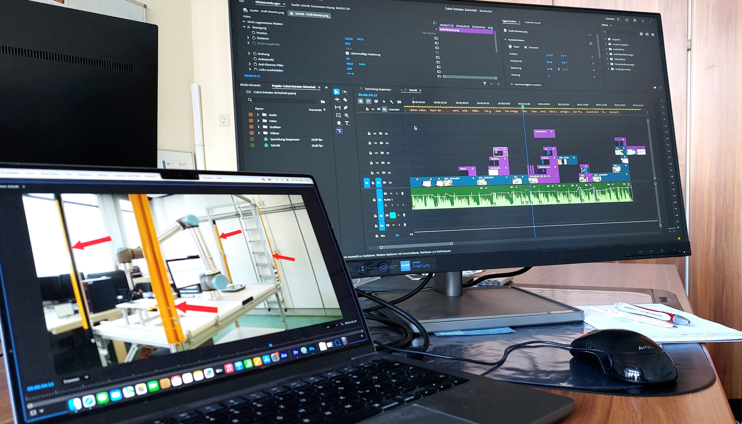 Im Mittelpunkt steht ein cobotbasiertes System zum automatisierten Entgraten, das in einem kurzen Video vorgestellt wird, von der Funktionsweise bis hin zu Sicherheitsaspekten und Benutzerfreundlichkeit. Bevor das fertige Video veröffentlicht werden kann, durchläuft auch dieses Projekt die klassischen Phasen der Medienproduktion: Preproduktion, Produktion und Postproduktion.